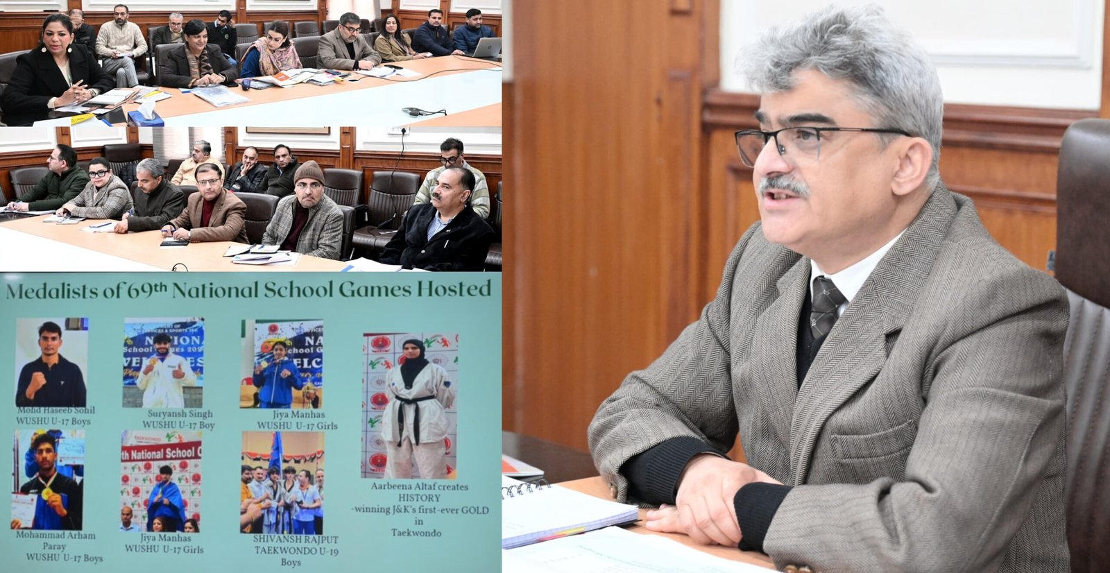 DYSS informed that J&K athletes have achieved notable success nationally and internationally. At the 69th National School Games, J&K emerged as Overall National Champions in Taekwondo with 11 Gold, 9 Silver and 18 Bronze medals, besides a Bronze in Football. Internationally, Nasir Ejaz Sufi of Baramulla contributed to India’s Bronze medal win at the ISF World School Games in China. Achievements of AarbeenaAltaf, J&K’s first-ever Taekwondo Gold medalist, and Sheetal Devi of Kishtwar, the youngest Indian Paralympian medalist at Paris 2024, were highlighted as inspirational milestones.