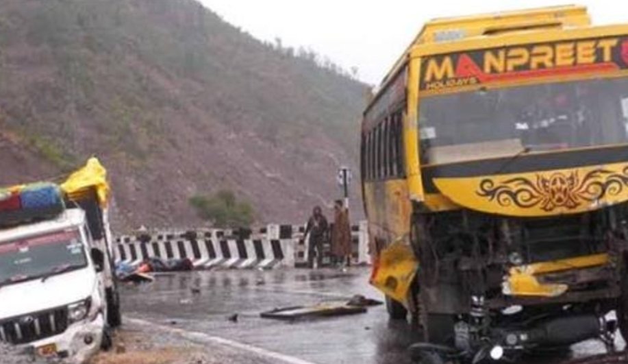 Officials said a bus travelling from Doda to Jammu lost control, hit a motorcycle, and then rammed into a load carrier that was parked on the roadside for repairs.