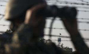 Jammu: A Border Security Force (BSF) official keeps a vigil as a Pakistani national flag is seen across the Line of Control (LOC), in Jammu, Saturday, Nov. 29, 2025.