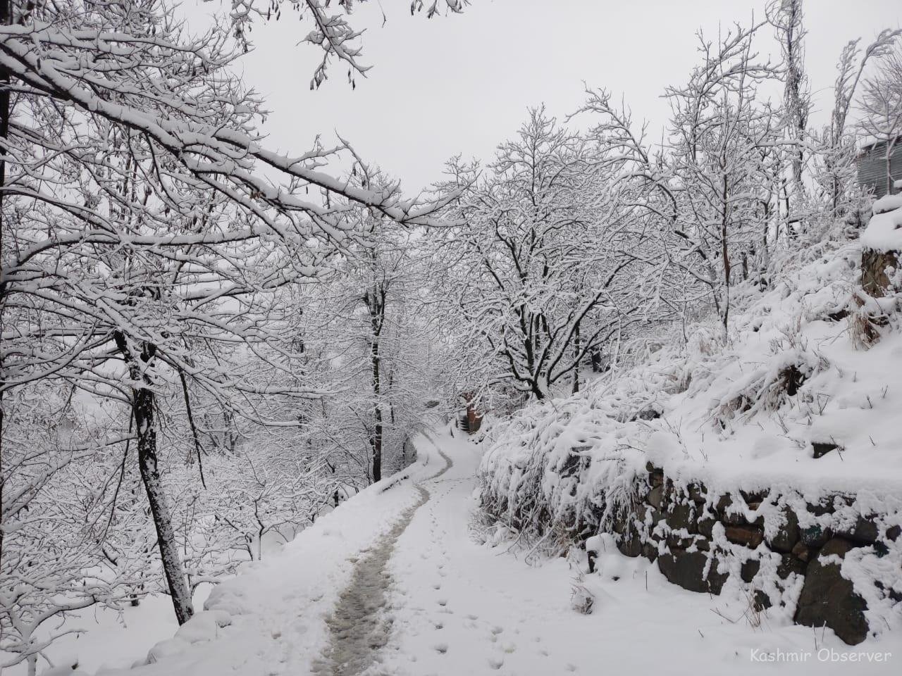 Jammu- Moderate to heavy snowfall was experienced in high-altitude areas, including the famous Mata Vaishno Devi shrine in the Jammu region, leading to the suspension of traffic on key roads and disruption of air and rail services.
